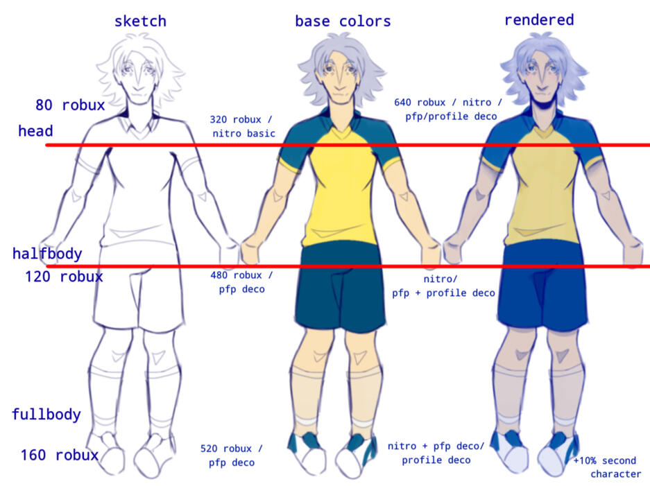 -Completed commissions may appear in portfolio -Commissions are for non-commercial use only. Art cannot be sold for monetary gain -Credit ; do NOT claim the piece as your own or remove the watermark sharing: feel free to post it on your socials !Wont draw ; NSFW , too detailed backgrounds , any problematic ships , gore , furriesCan draw ; any canon character , ocs/personas/avatars , oc x canon , any legal/non-problematic ships , humans , mythical creatures (nagas , mermaids ext.)